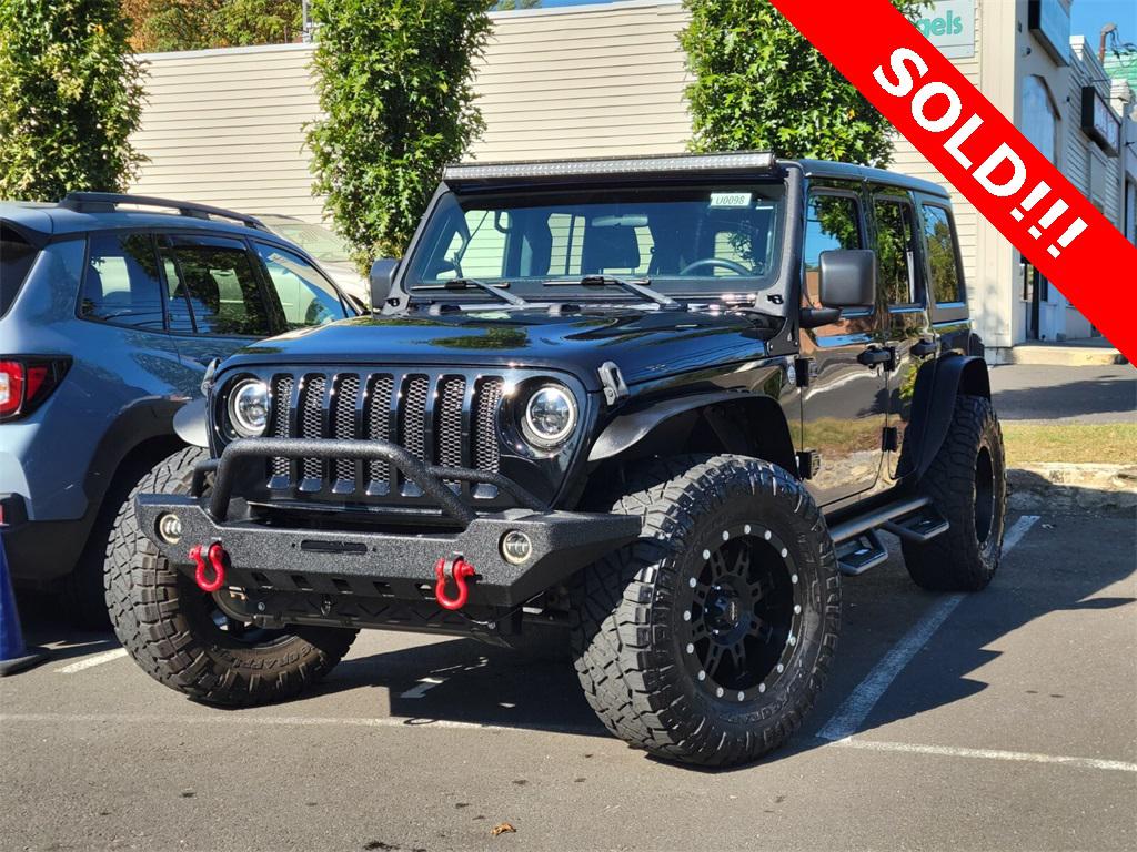 35"" NITTO RIDGE GRAPPLER ON PRO COMP WHEELS, N FAB SIDE STEPS, STEEL WHEEL FLARES, STEEL FRONT BUMPER, WINDSHEILD MOUNTED LED LIGHTBAR, LOW MILES, 220 Amp Alternator, Alpine Premium Audio System, Automatic Headlamps, Black 3-Piece Hard Top, Cold Weather Group, Convenience Group, Deep Tint Sunscreen Windows, Dual Top Group, Freedom Panel Storage Bag, Front 1-Touch Down Power Windows, Heated Front Seats, Heated Steering Wheel, Leather Wrapped Steering Wheel, Power Heated Mirrors, Premium Black Sunrider Soft Top w/Dual Top Group, Quick Order Package 24S Sport S, Rear Window Defroster, Rear Window Wiper/Washer, Remote Keyless Entry, Security Alarm, Speed Sensitive Power Locks, Sun Visors w/Illuminated Vanity Mirrors, Universal Garage Door Opener, Wheels: 17"" x 7.5"" Tech Silver Aluminum. Clean CARFAX. Black Clearcoat 4WD 8-Speed Automatic 3.6L V6 24V VVT2018 Jeep Wrangler Unlimited Sport S